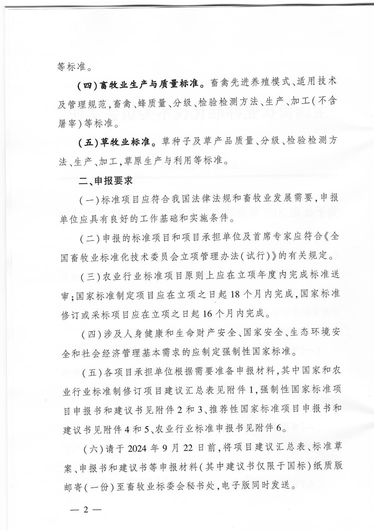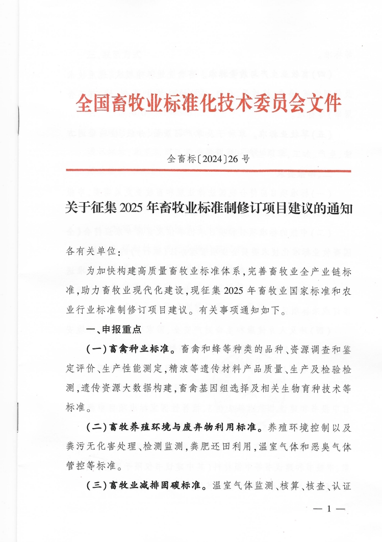 关于征集2025年畜牧业标准制修订项目建议的通知